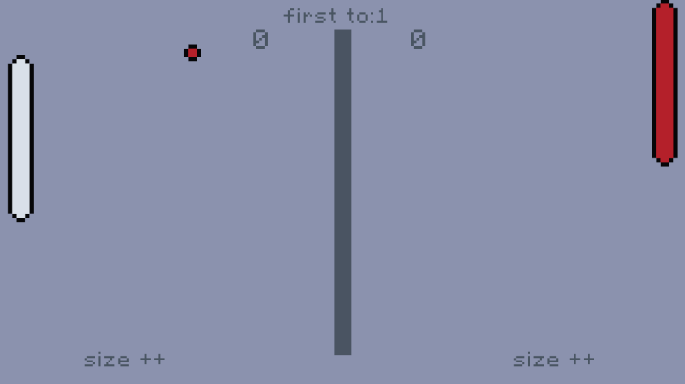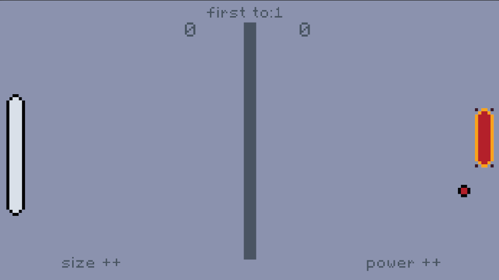 the classic with a twist, get 1 randomly selected power up out of 2 during round, currently just size++ (increases your paddle's length) and power++ (you wack the ball harder)